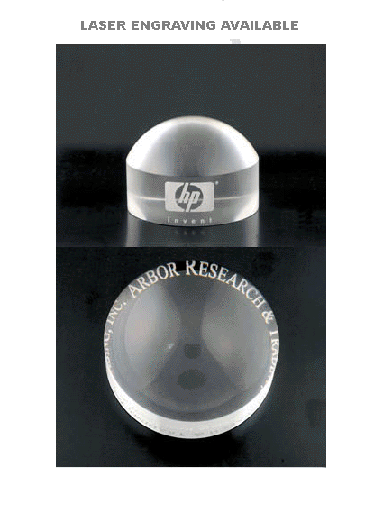 Yes our dome magnifiers are available with specialty laser engraving around the rim of each unit or on the bottom as well (see images to the left for both examples). Our corporately logo engraved dome magnifier are the perfect solution for your corporate gift list and make an functional desk paperweight magnifier, that will make an impact for years to come. We can also etch precise measuring scale for industrial or medical applications.